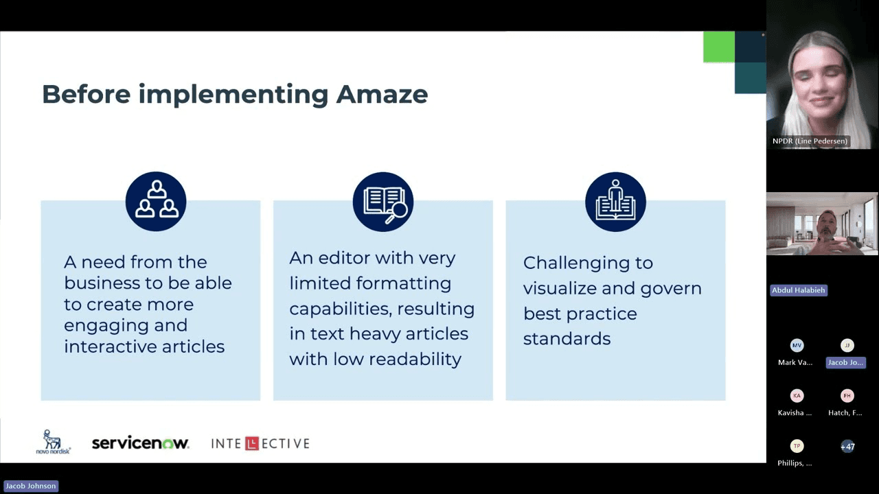 Novo Nordisk cured its ailing knowledge base, boosting article views by 105%! See how they transformed their text-heavy ServiceNow portal into an engaging self-service hub for 64,000+ employees using Intellective's Amaze. Watch the success story.